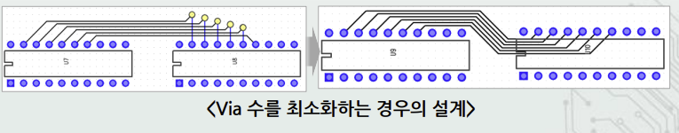 최대한 Via의 수를 줄이며 패턴을 설계해야 한다.
