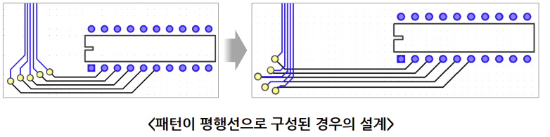 왼쪽 설계에서 부터, 패턴을 가능한 직선화하고 짧게 보완한다.