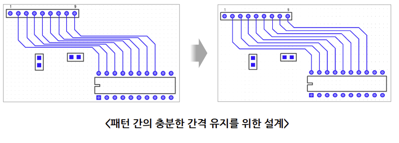 기판의 공간이 여유가 있을 때에는 패턴 간의 간격을 충분히 확보하여