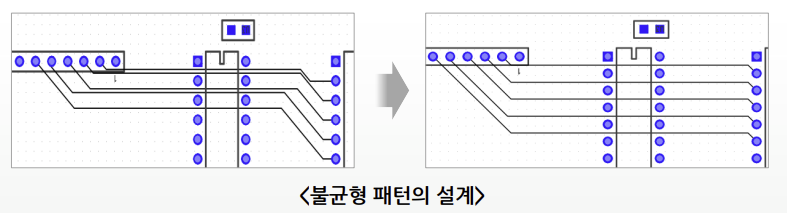 패턴 설계의 작업시간의 단축하고, 제한된 보드(Bode)에 많은 패턴을 설계할 때 유용하다.